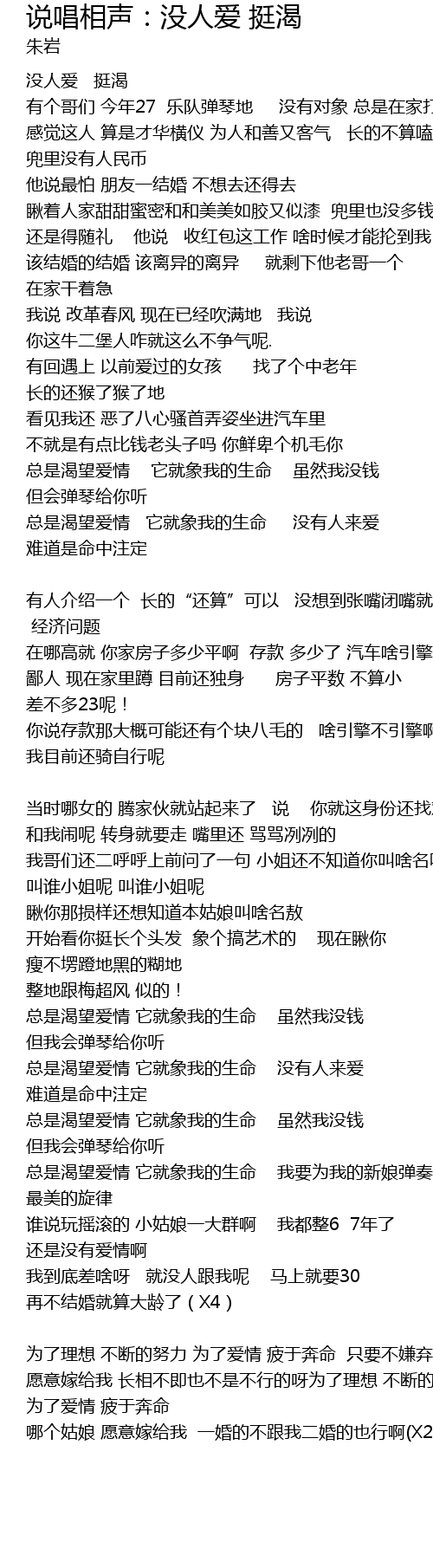 | 总是渴望爱情 它就象我的生命 虽然我没钱 但我会弹琴给你听 | |
