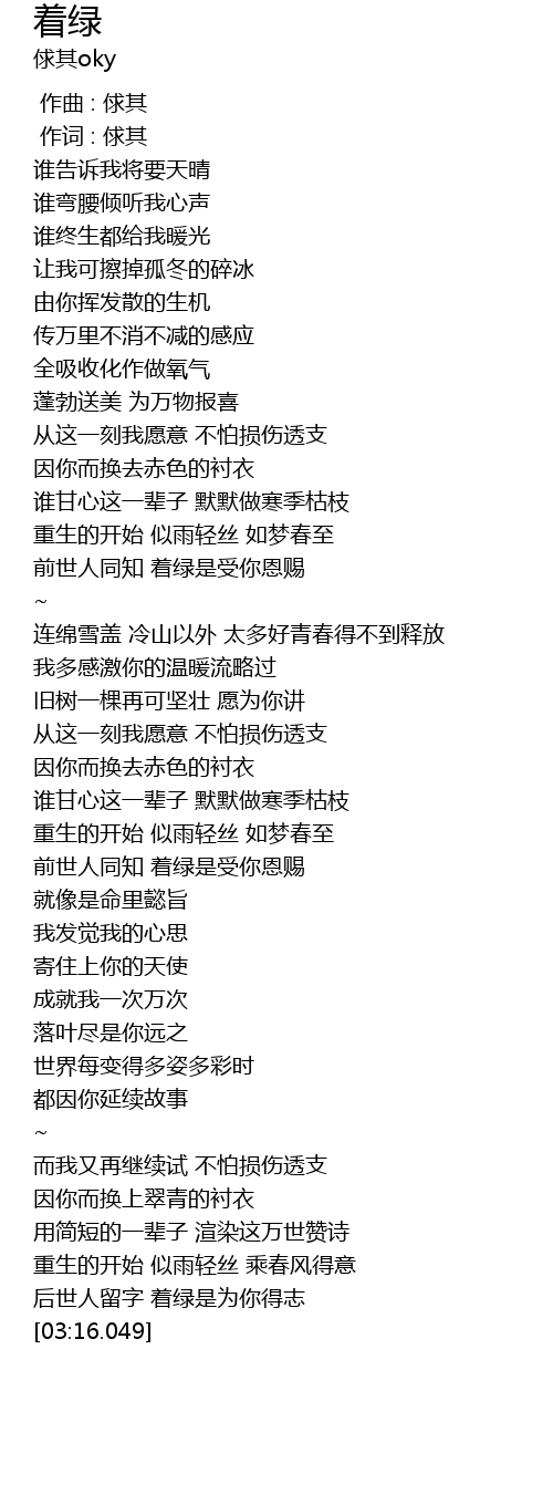 | [03:09.357] | 后世人留字 着绿是为你得志 |