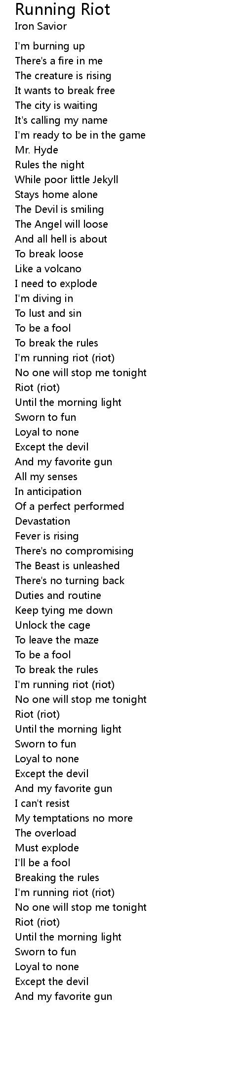 Running Riot Lyrics