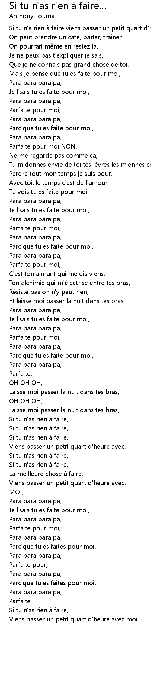 | Si tu n' a rien a faire viens passer un petit quart d' heure avec moi, | |