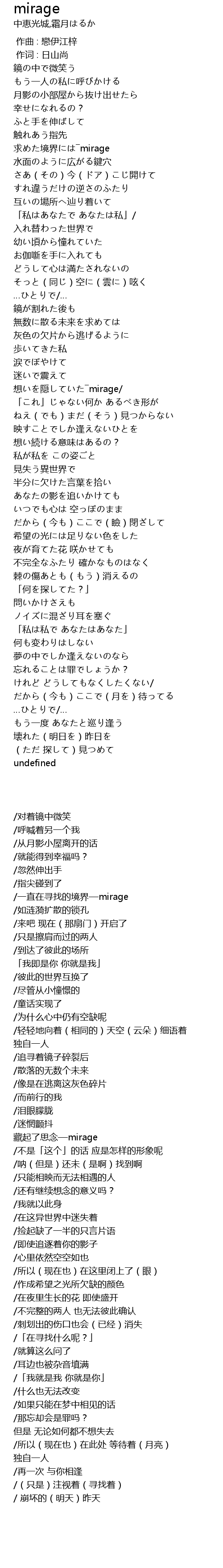 | [00:42.96] | 求めた境界には―mirage |