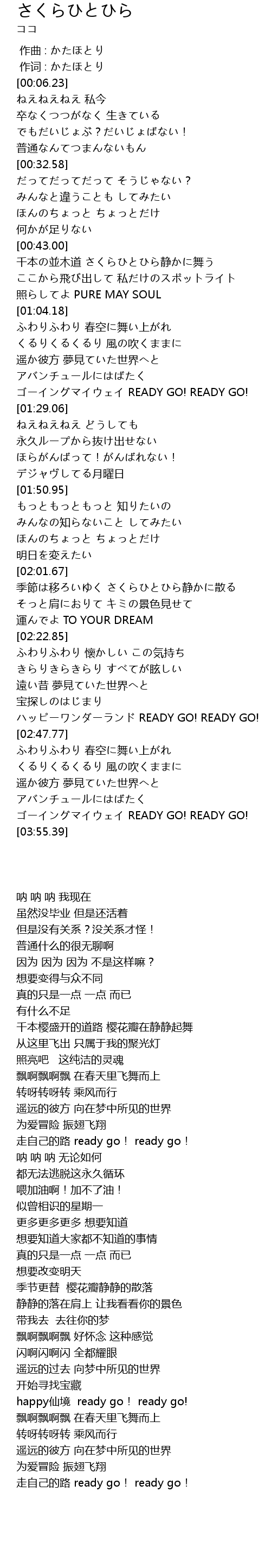 | [01:04.84] | ふわりふわり 春空に舞い上がれ |