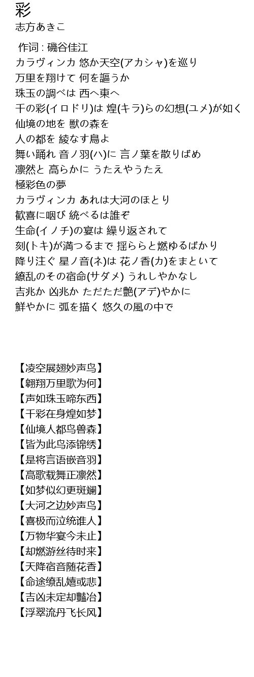| [00:35.200] | カラヴィンカ 悠か天空(アカシャ)を巡り |