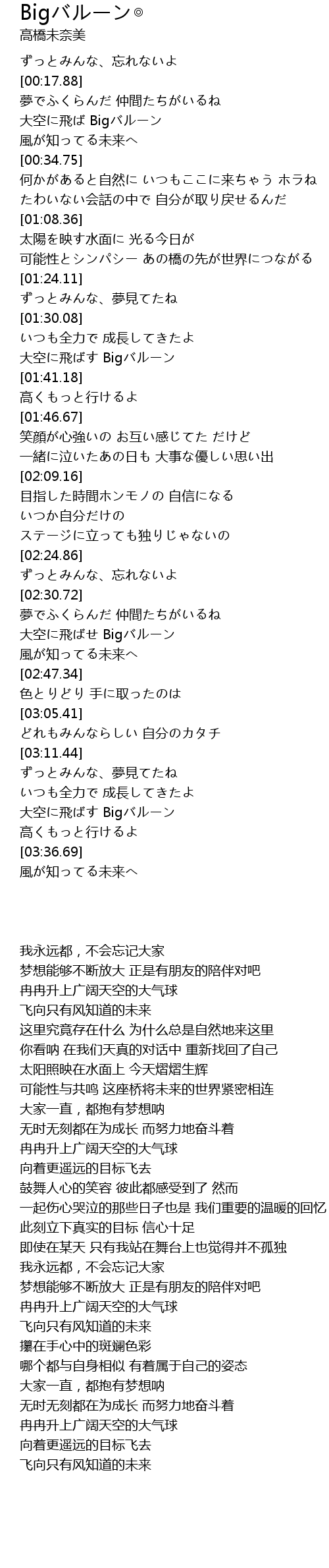 | [03:26.33] | 大空に飛ばす Bigバルーン |