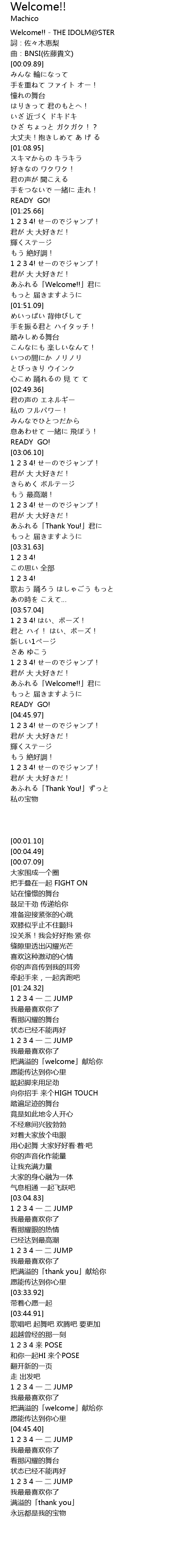 | [00:01.10] | Welcome!! - THE IDOLM@STER |