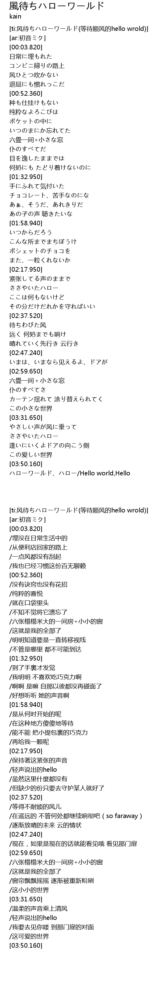 | [ti:风待ちハローワールド(等待顺风的hello wrold)] | |