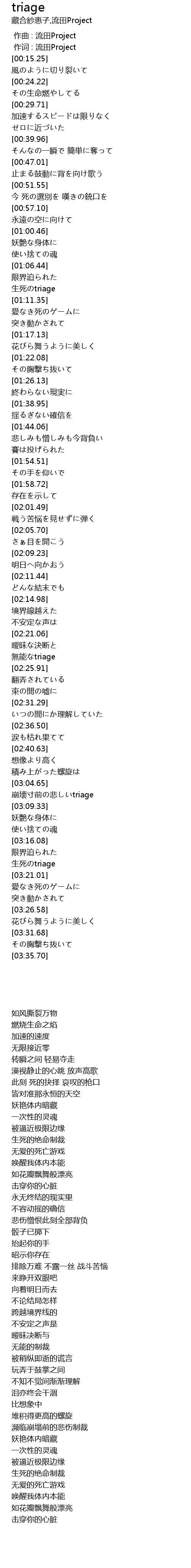 | [01:09.87] | 生死のtriage |
