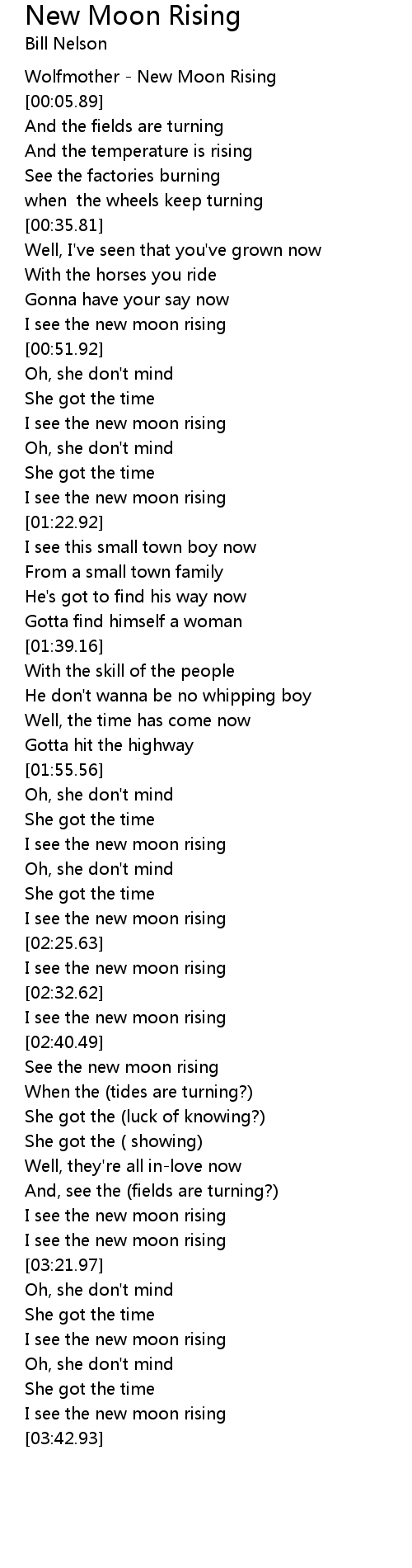 I see the new moon rising |