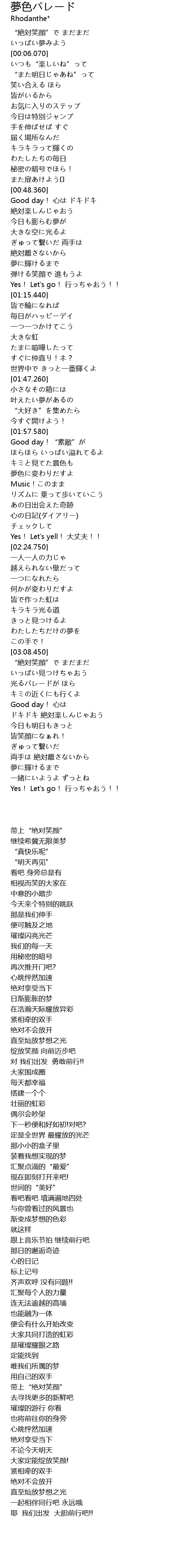 | [01:07.400] | 弾ける笑顔で 進もうよ |