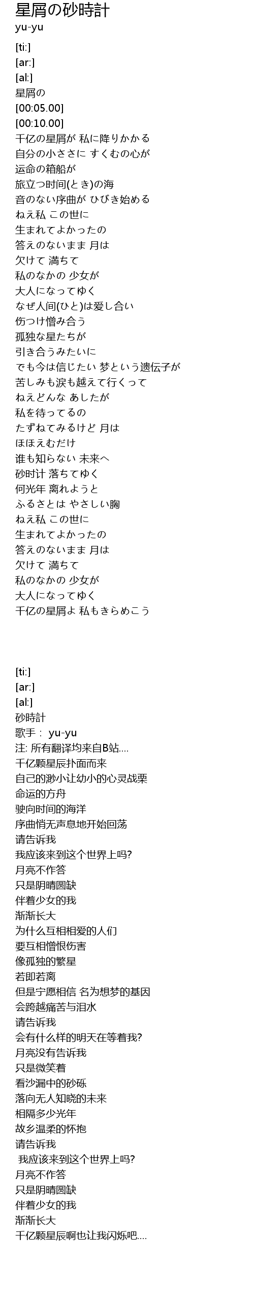 | [05:16.89] | 千亿の星屑よ 私もきらめこう |