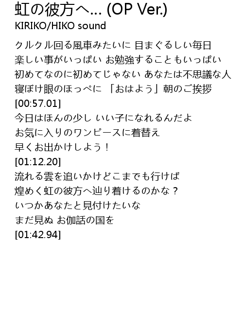 | [01:35.56] | まだ見ぬ お伽話の国を |