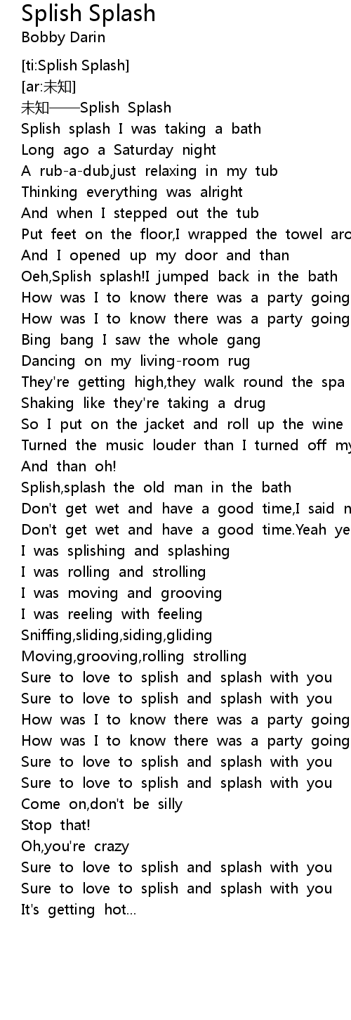| [00:03.746] | Splish splash I was taking a bath |