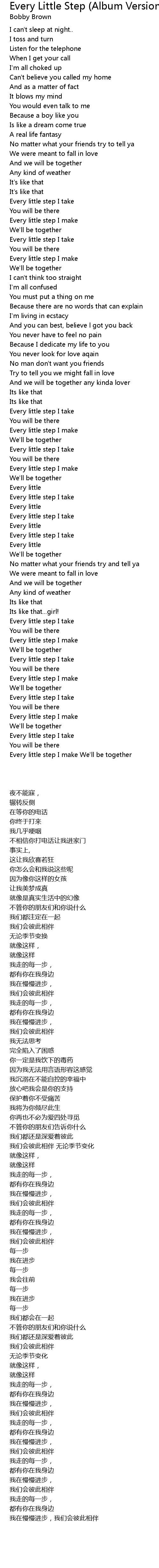 Every little step I make We'll be together |