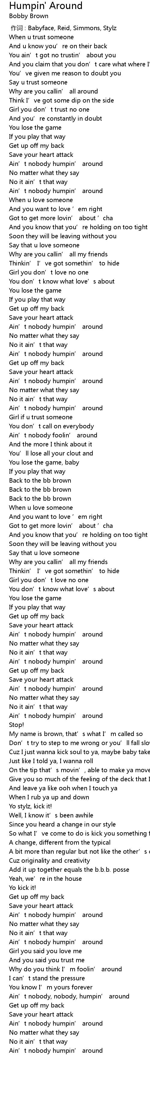 | [05:46.66] | Ain' t nobody, nobody, humpin' around |