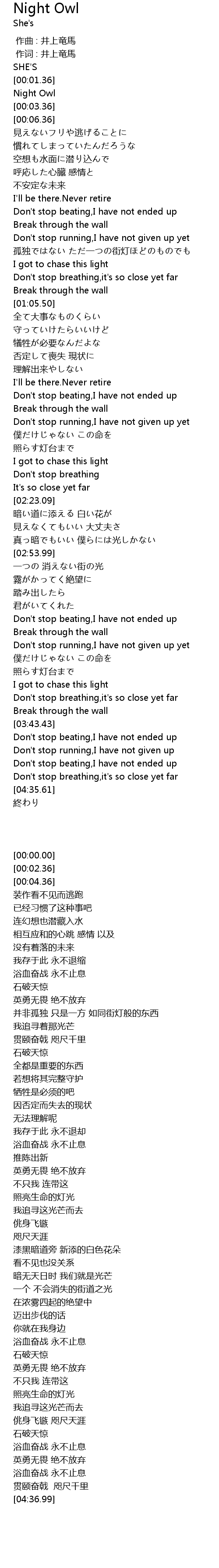 | [00:02.36] | Night Owl |