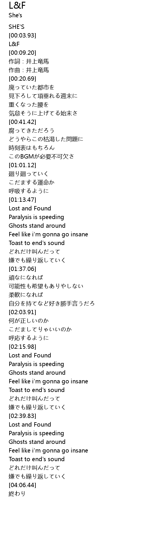 | [03:35.83] | Lost and Found |