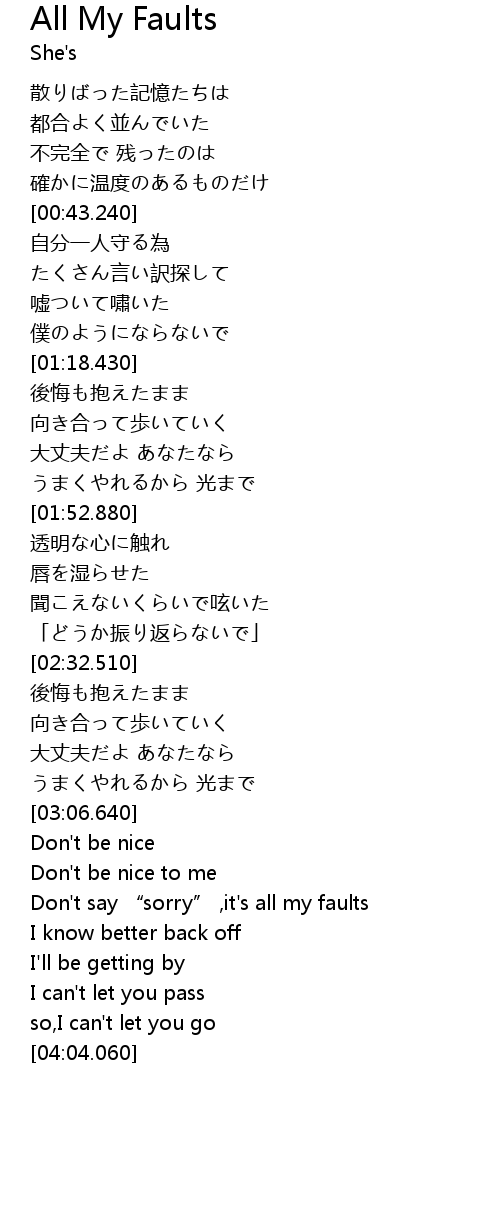 | [03:41.980] | Don' t say " sorry" , it' s all my faults |
