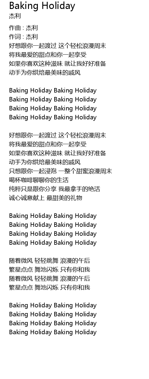 | Song | Baking Holiday |