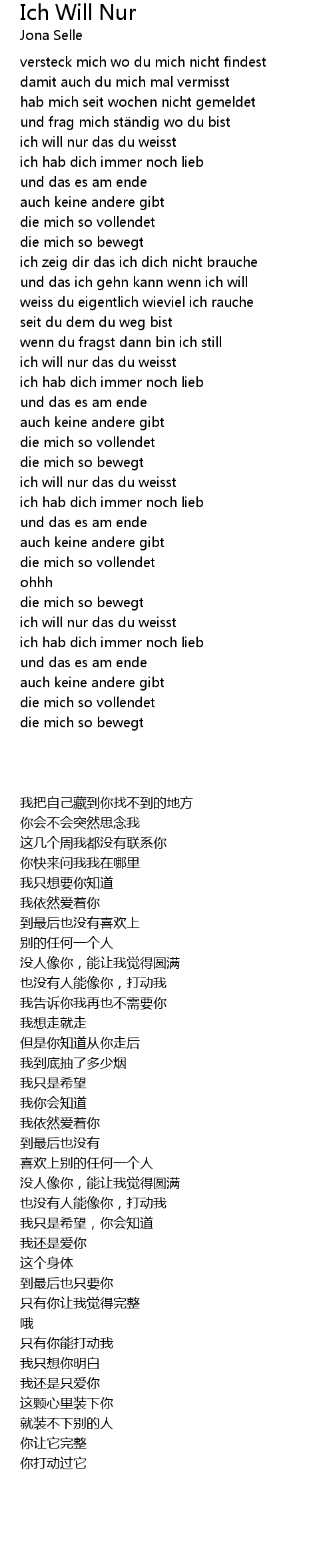 | [00:15.17] | versteck mich wo du mich nicht findest |