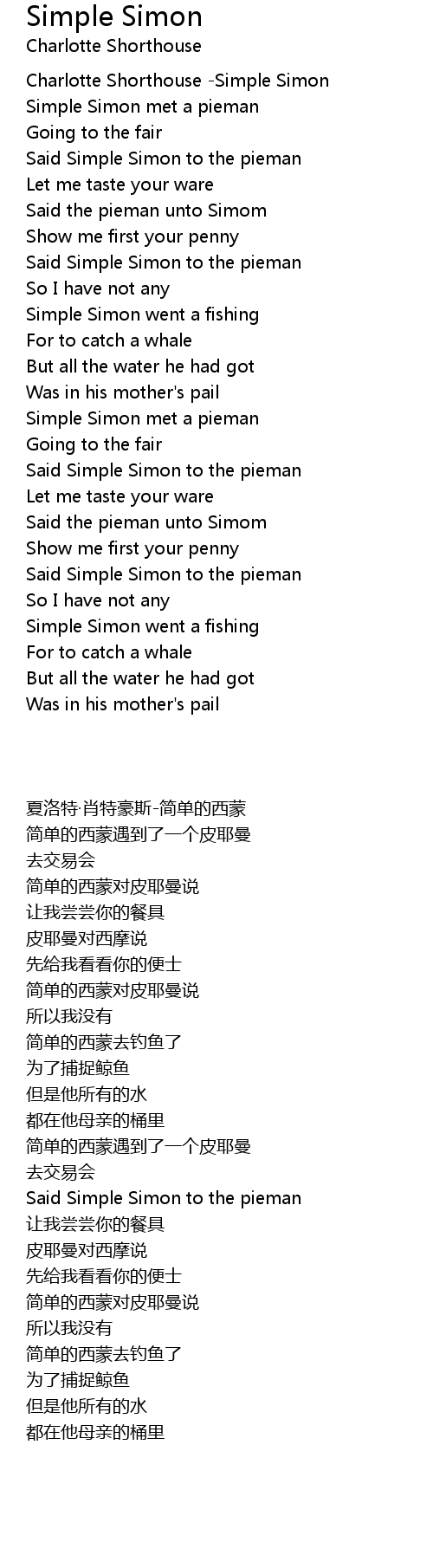 Simple Simon Lyrics