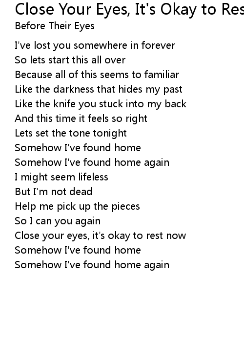 | Song | Close Your Eyes, It's Okay to Rest Now |