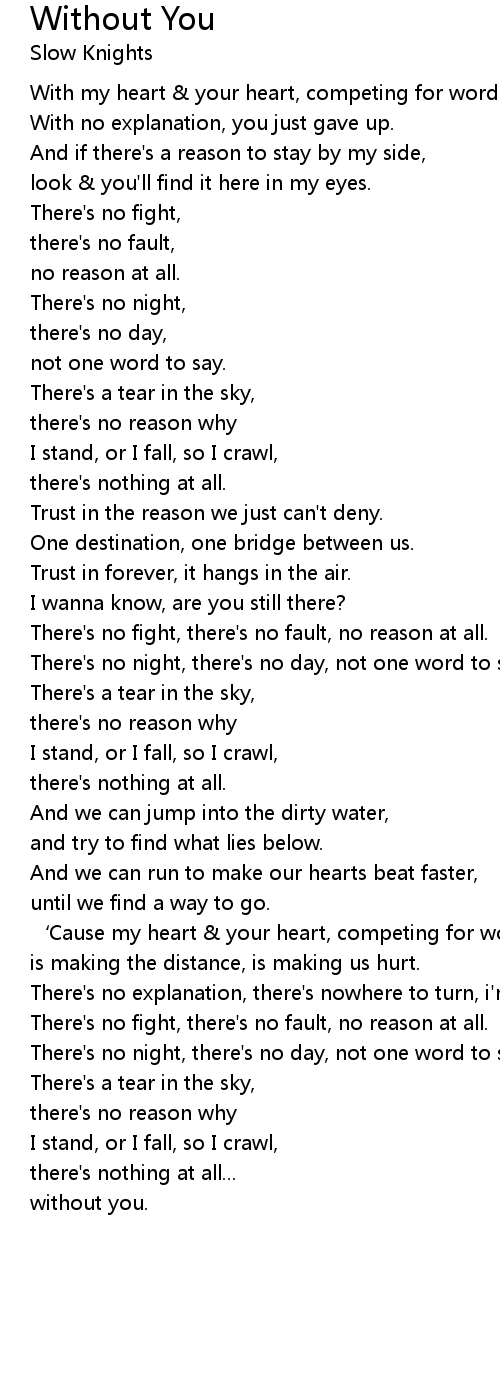 | There's no explanation, there's nowhere to turn, i'm yours. | |