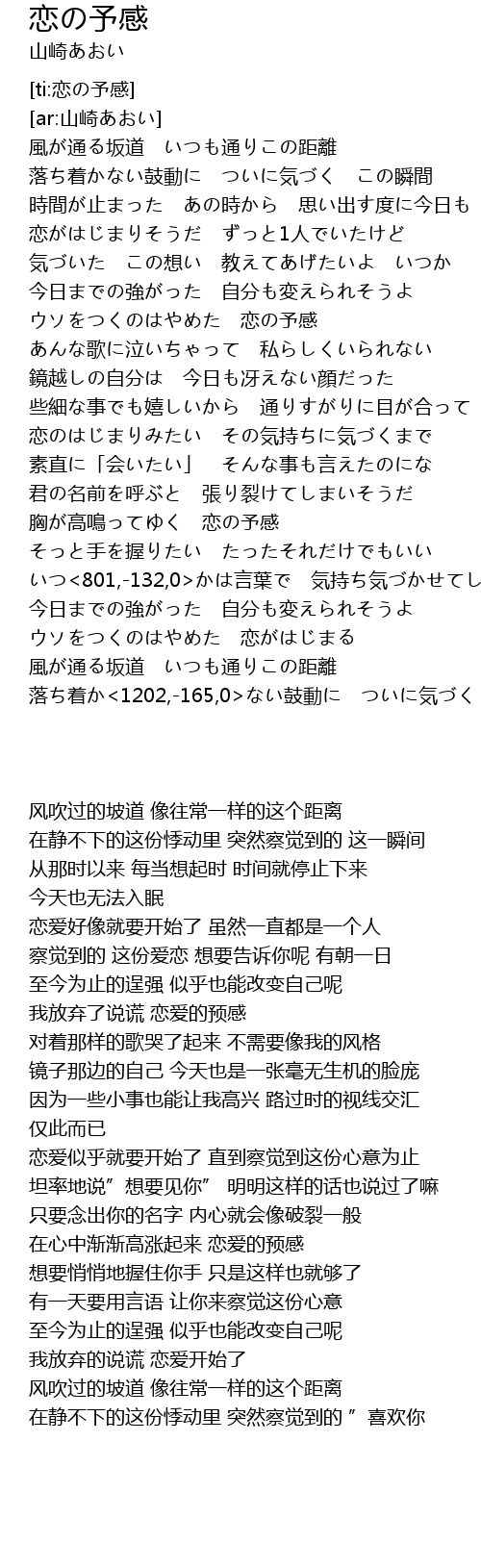 | [02:17.485] | 胸が高鳴ってゆく 恋の予感 |