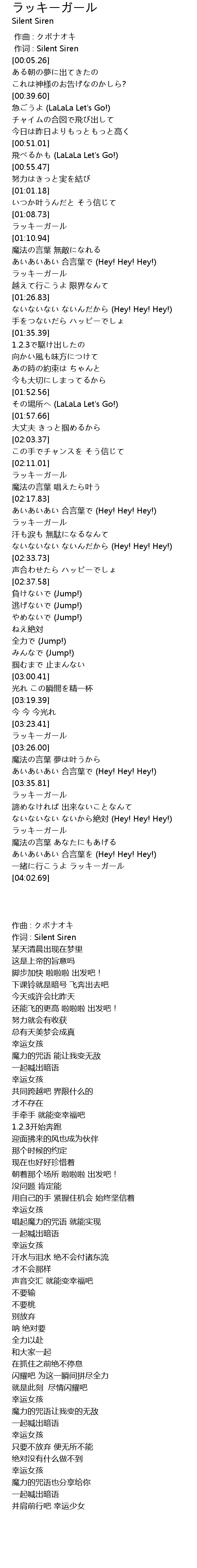 | [00:52.23] | 飛べるかも (LaLaLa Let's Go!) |