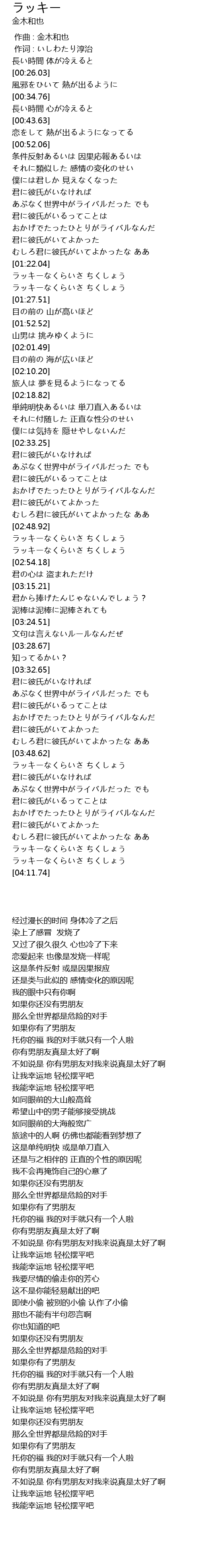| [03:49.35] | ラッキーなくらいさ ちくしょう |
