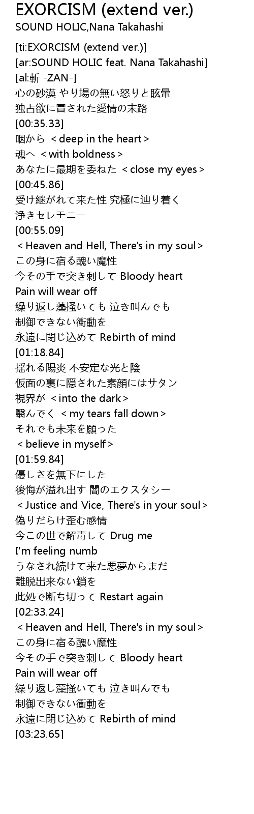 | [03:00.25] | <Heaven and Hell, There's in my soul> |