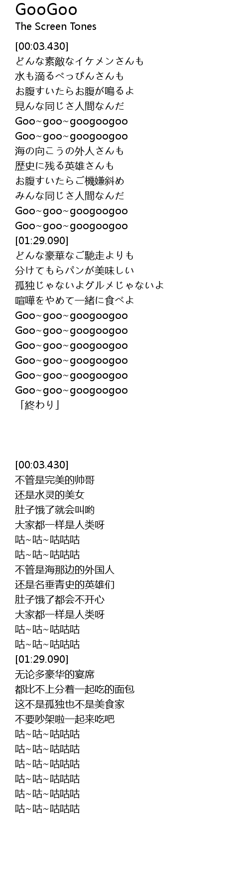 | [01:20.000] | Goo goo googoogoo |