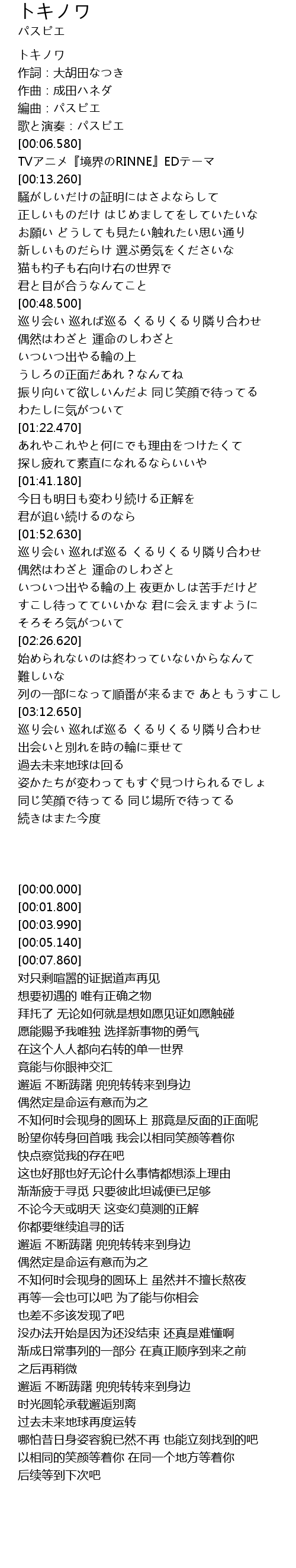 | [03:34.960] | 巡り会い 巡れば巡る くるりくるり隣り合わせ |