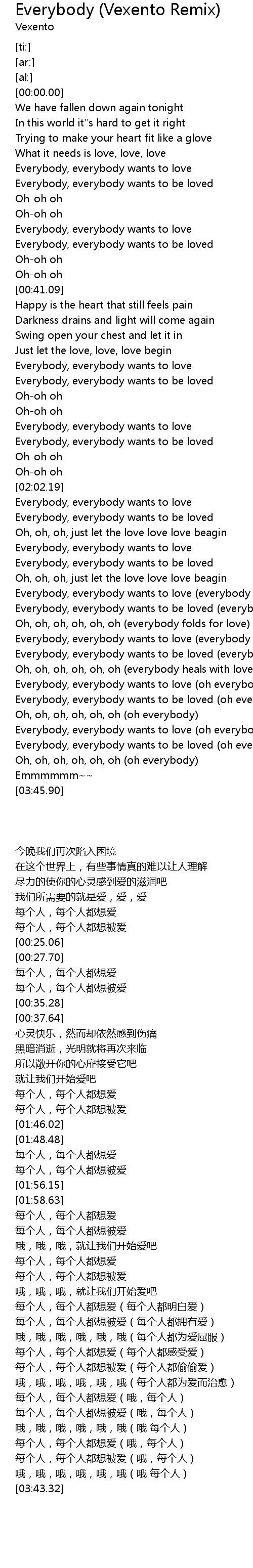 | [03:32.00] | Everybody, everybody wants to love (oh everybody) |