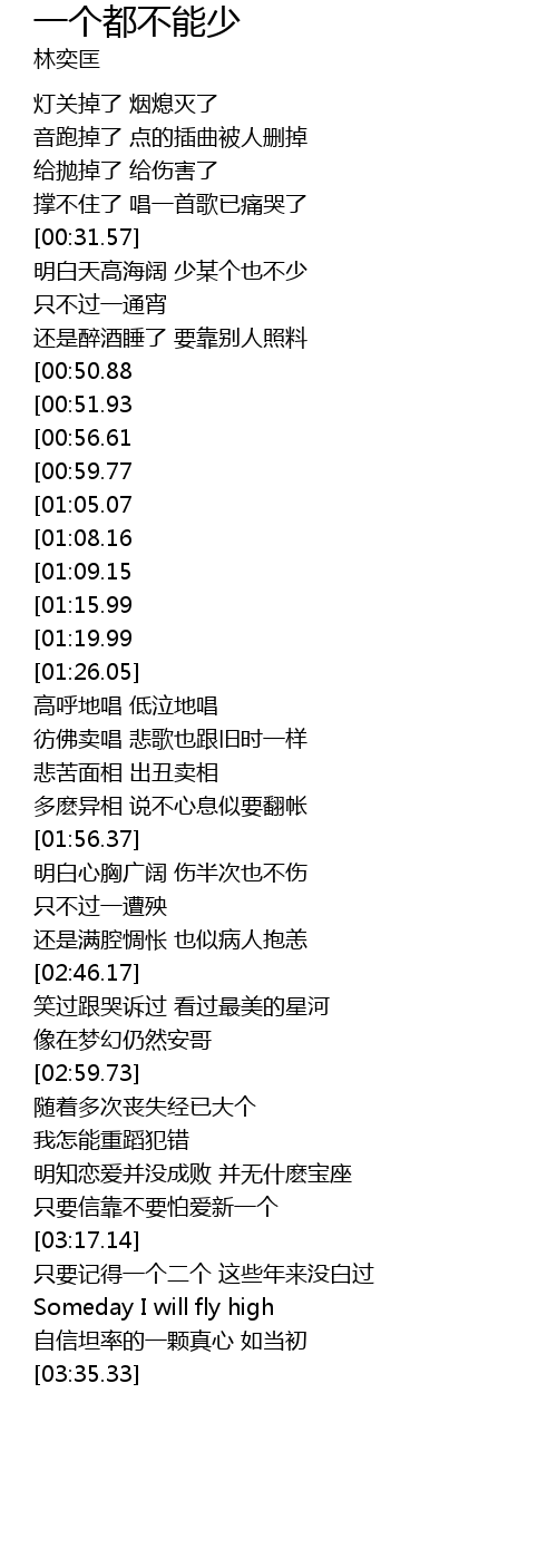 | [00:32.74] | 明白天高海阔 少某个也不少 |