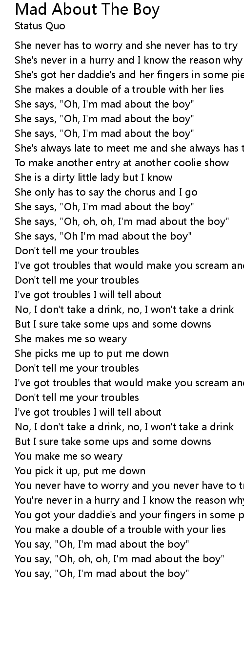 You say, "Oh, oh, oh, I'm mad about the boy"