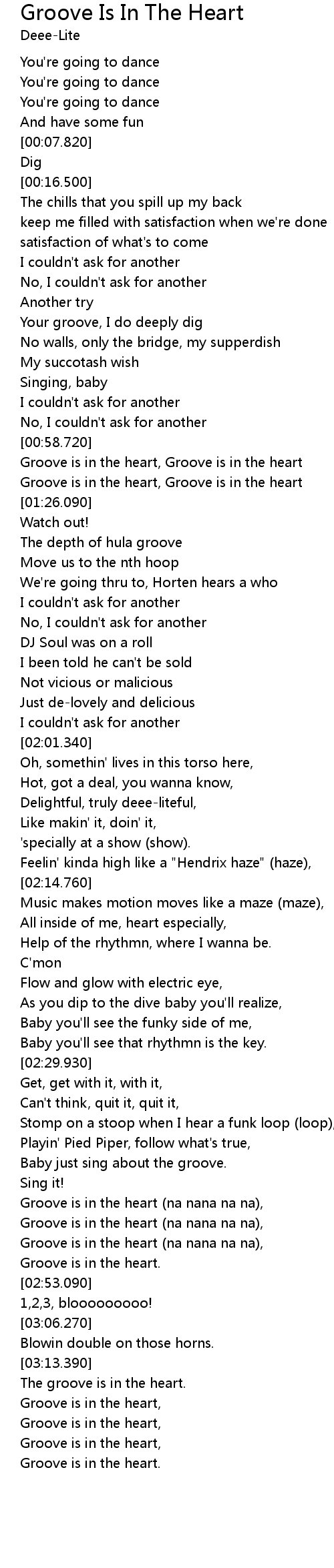 [01:19.410] Groove is in the heart, Groove is in the heart