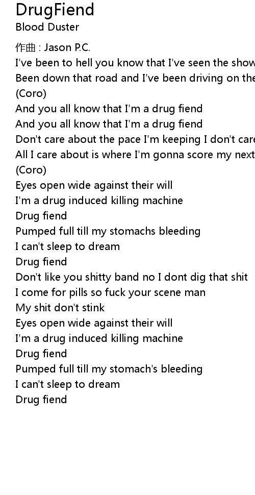 | And you all know that I'm a drug fiend | |