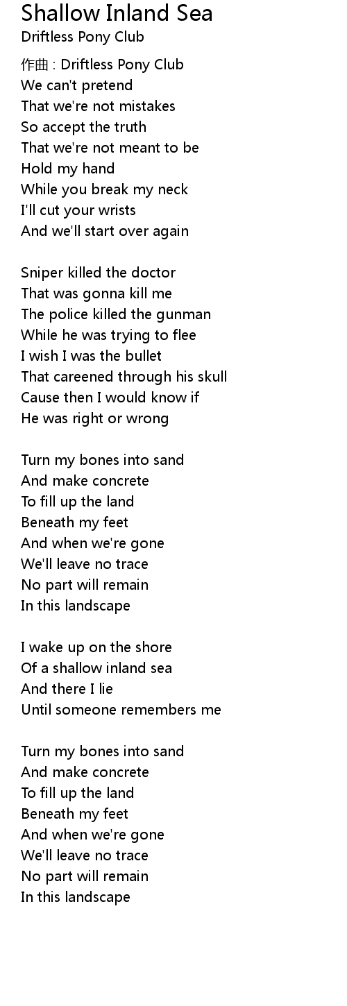 | Song | Shallow Inland Sea |