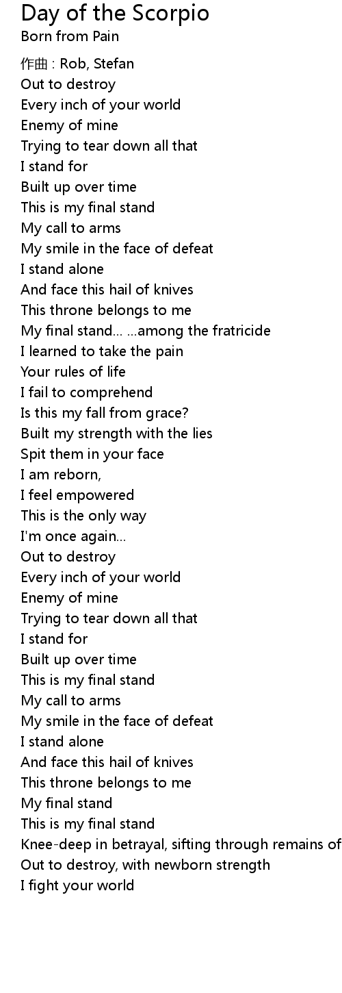 | Song | Day of the Scorpio |
