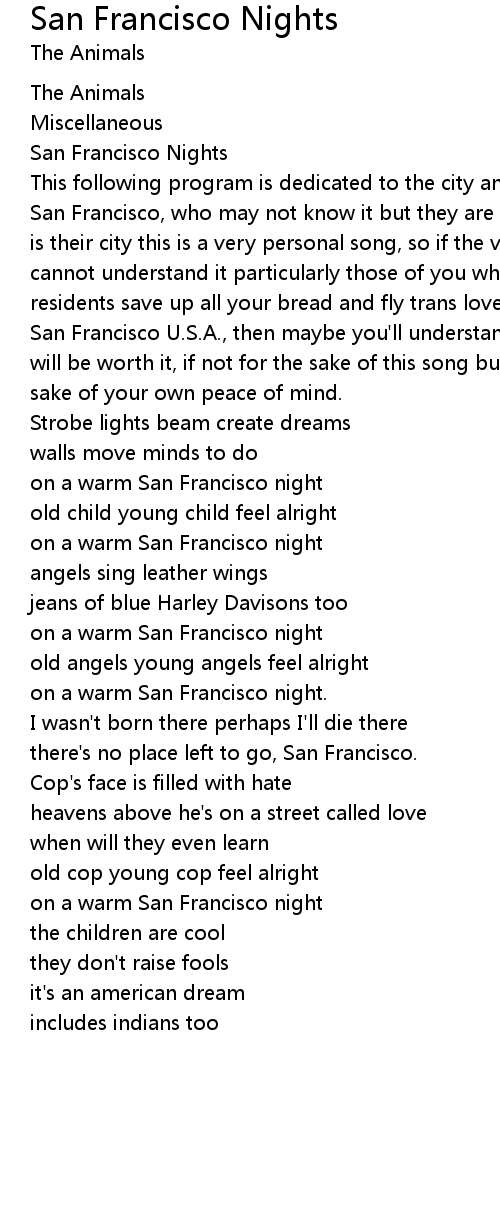San Francisco U.S.A., then maybe you'll understand the song, it |