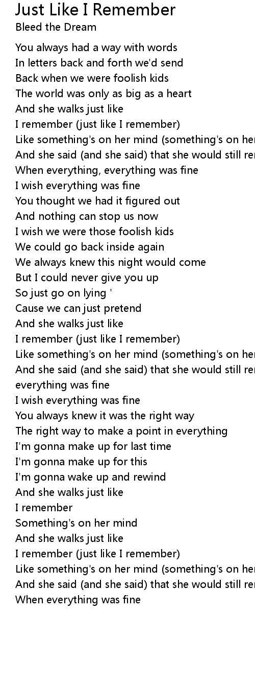 Just Like I Remember Lyrics