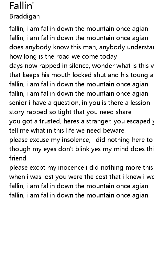 fallin, i am fallin down the mountain once agian
