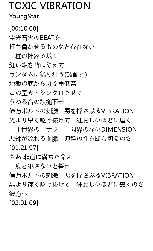 | [00:59.81] | 億万ボルトの刺激 悪を揺さぶるVIBRATION |