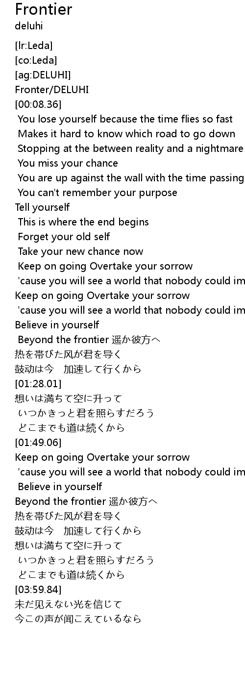 | [03:21.95] | Beyond the frontier 遥か彼方へ |