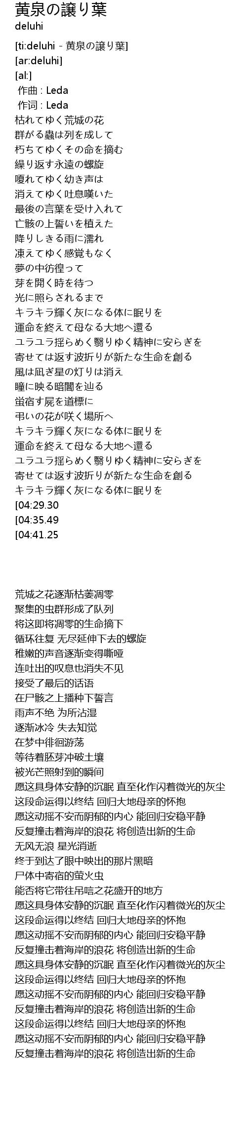 | [ti:deluhi - 黄泉の譲り葉] | |