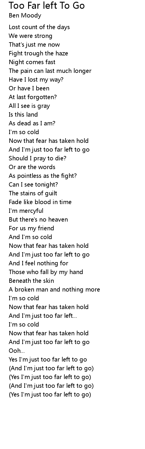 (And I'm just too far left to go) |
