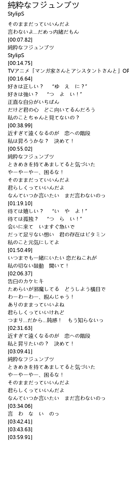 | [00:15.56] | TVアニメ「マンガ家さんとアシスタントさんと」OPテーマ |