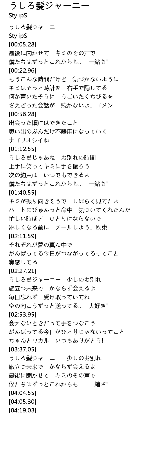 | [03:37.63] | うしろ髪ジャーニー 少しのお別れ |