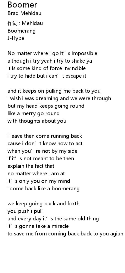 | i come back like a boomerang | |