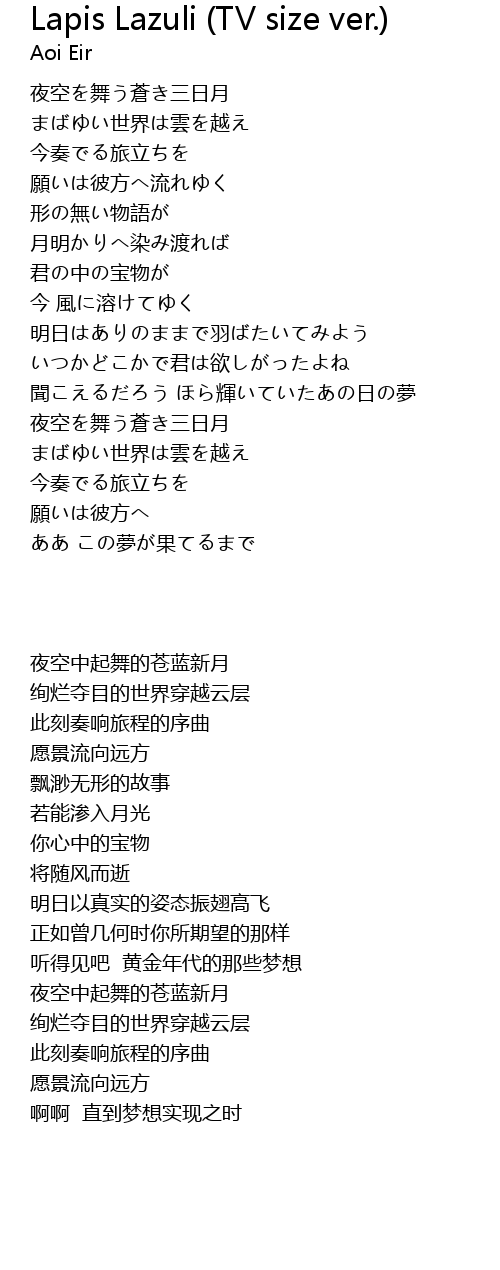 | Song | Lapis Lazuli (TV size ver.) |